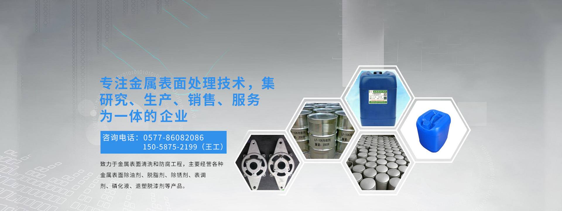 溫州龍飛環(huán)保科技有限公司是金屬表面處理技術集研究、生產(chǎn)、銷售、服務為一體的高新科技企業(yè),致力于金屬表面清洗和防腐工程,主要經(jīng)營各種金屬表面除油劑、脫脂劑、除銹劑、表調劑、磷化液、退塑脫漆劑、除蠟水、防銹水防銹油、封閉劑、鈍化劑、發(fā)黑劑、著色劑、化學拋光劑、合成乳化劑、水處理劑等金屬表面處理劑,廣泛適用于產(chǎn)品的噴塑、噴漆、噴砂、電泳、電鍍前的表面處理以及表面終處理,現(xiàn)已涉通用機械零部件、汽摩配件、五金及電工工具、電器電腦、潔具閥門、教學儀器等。